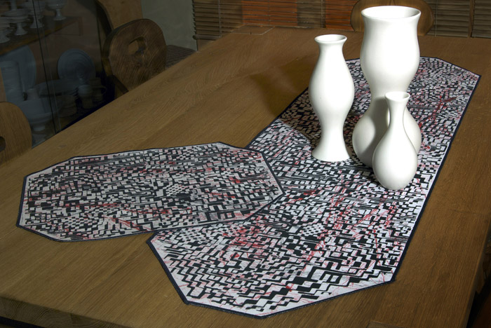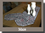 This line of table linens uses silk-screening and other surface design techniques. I work in small editions, each edition never repeating exactly the same color combinations.